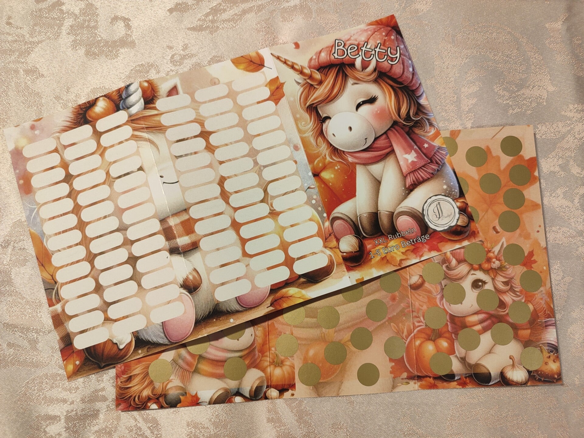 Betty das süße Herbsteinhorn kommt mit einer 3 er Klappkarte und einem xxl Rubbeln zu euch